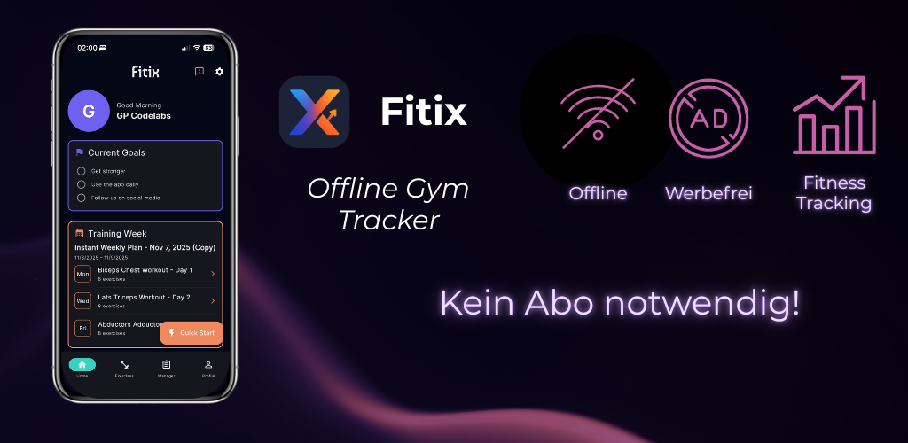 Fitix – Offline Gym Workout Tracker ohne Abo-Zwang
